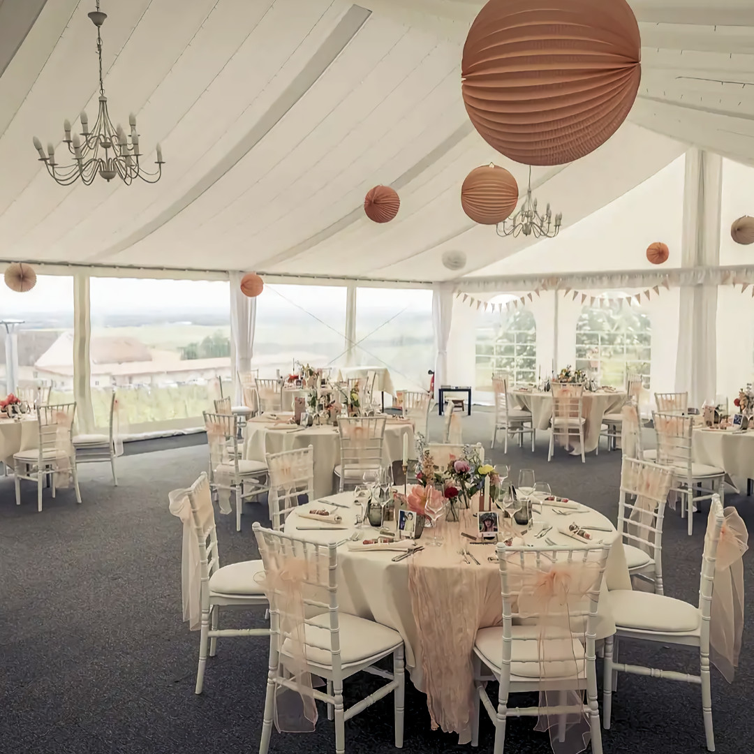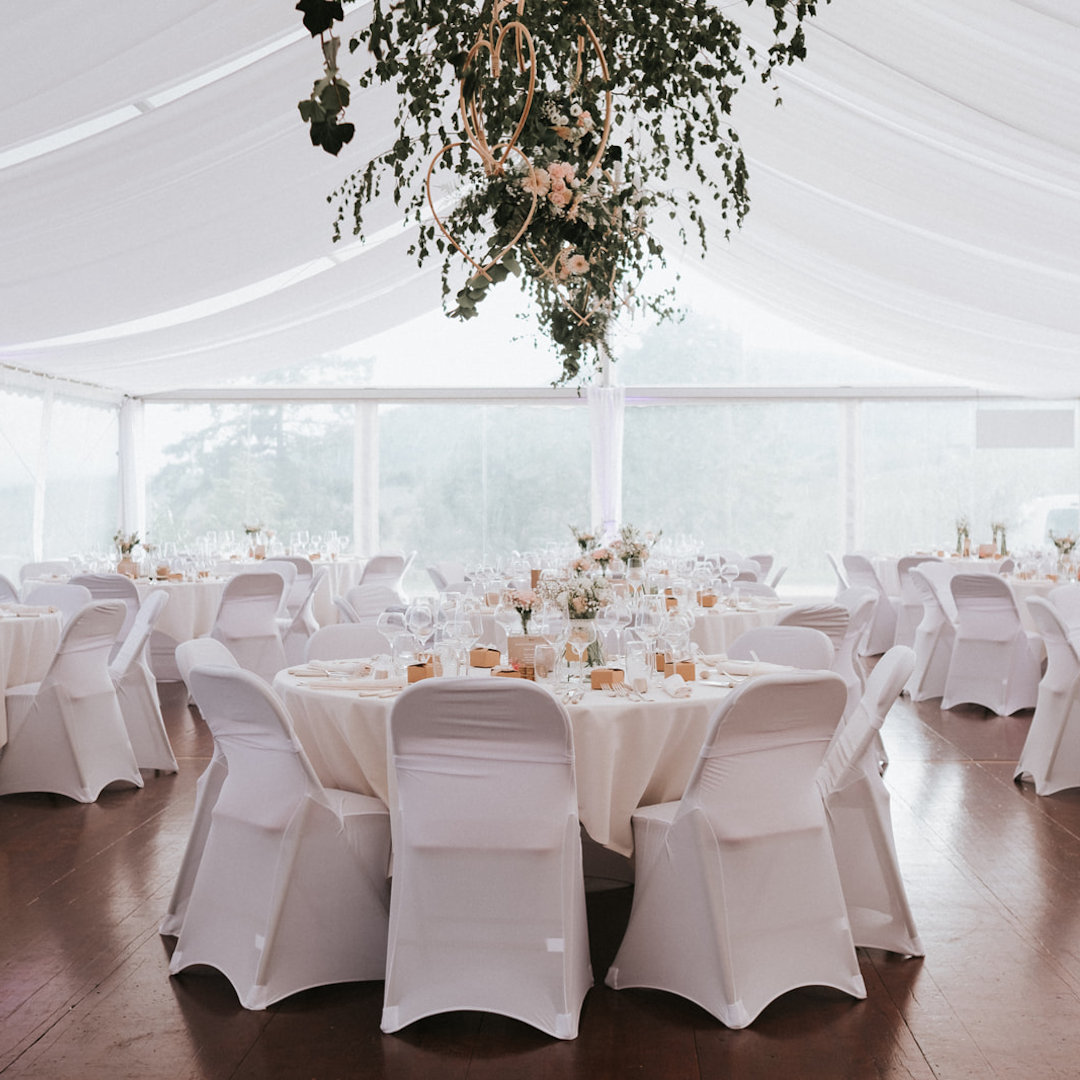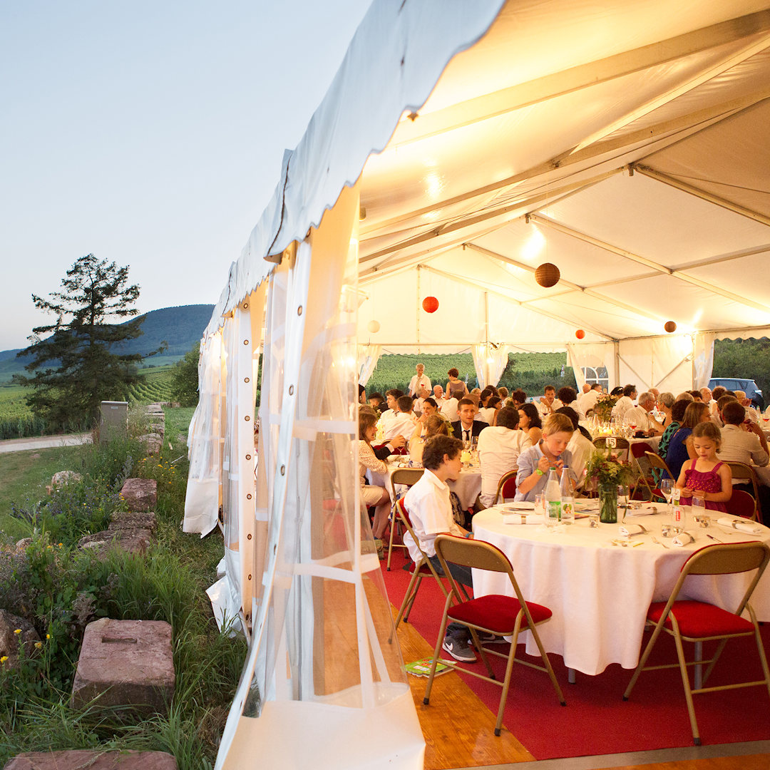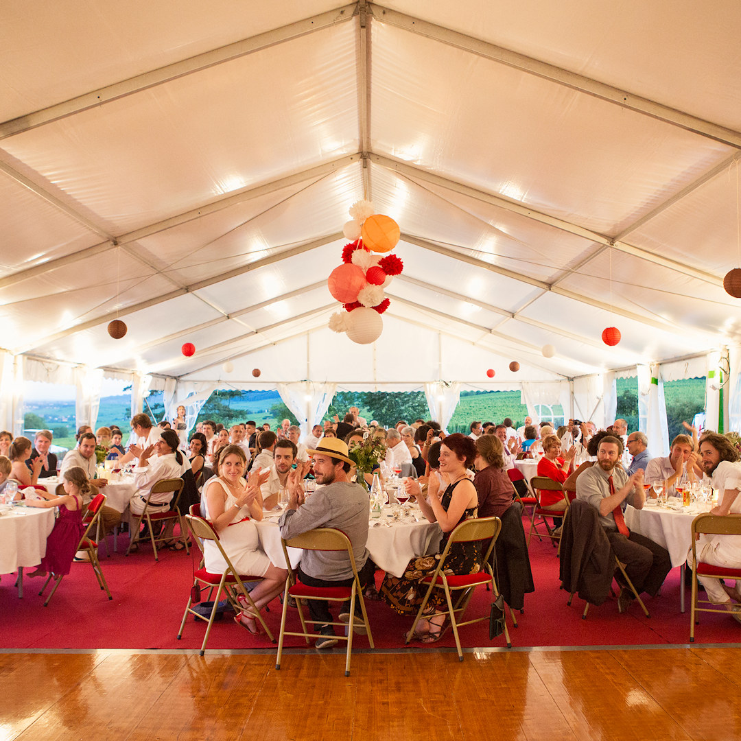 À quelques pas du restaurant, un magnifique chapiteau de 250m2 vous attend au milieu des vignes, offrant un espace élégant et champêtre pour votre dîner. Entièrement équipé et personnalisable, il est l'écrin idéal pour un menu semi-gastronomique conçu selon vos désirs.