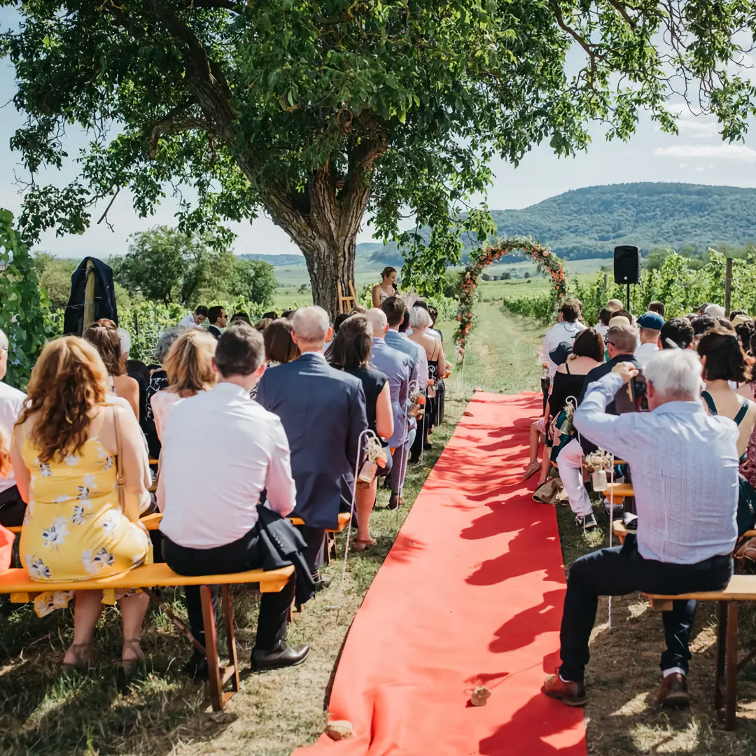 Avec 25 hectares de nature préservée, le domaine offre une multitude de lieux pour une cérémonie laïque empreinte d'émotion, que ce soit au milieu des vignes ou sous un noyer centenaire.